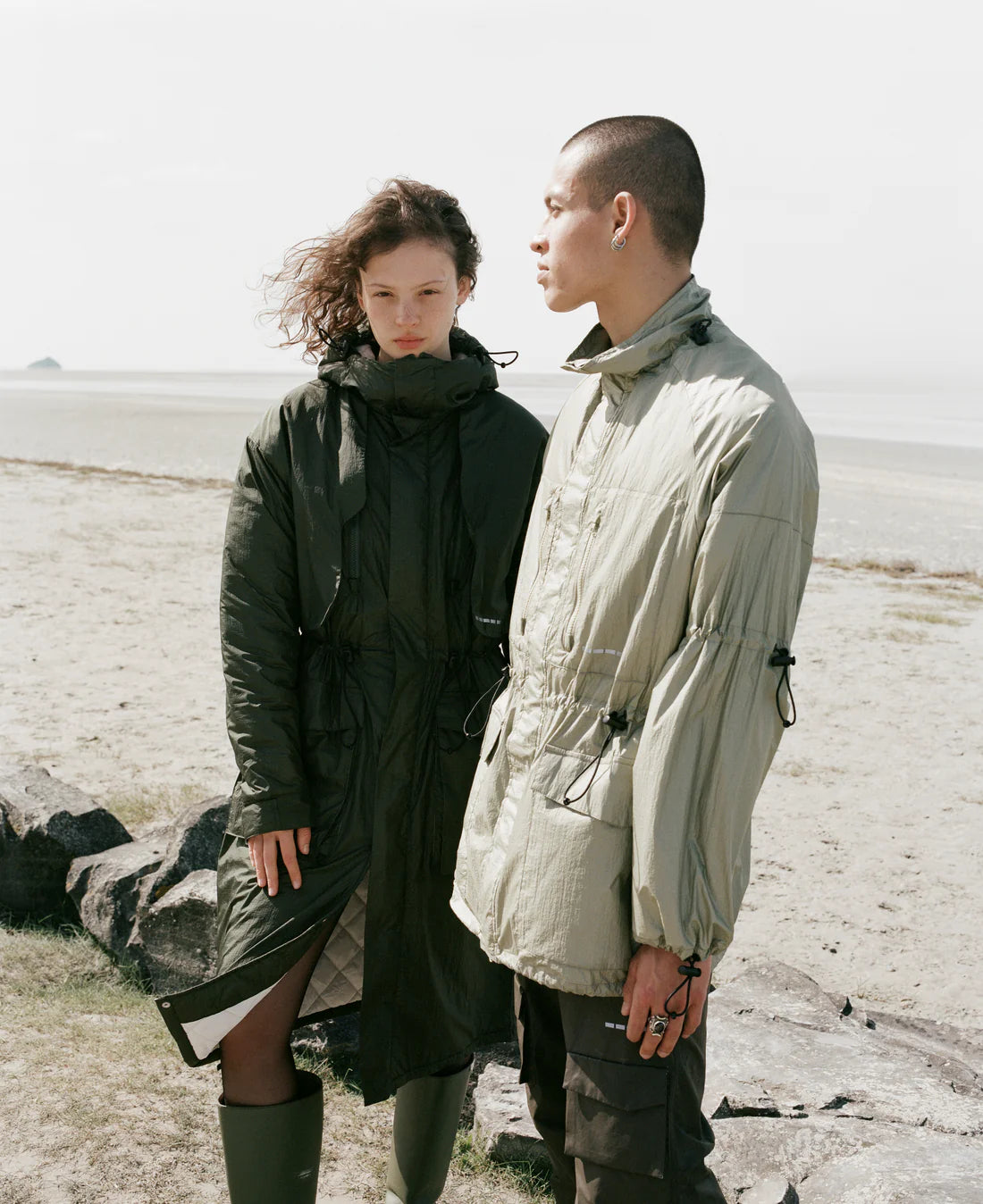 このブランドは、スポーツウェアとアウターウェアのコードを取り入れ、機能的でスタイリッシュなアイテムを作り出す、技術的で時代を超えたアプローチで際立っています。物理的なパフォーマンスに適した革新的な素材の追求が、すべてのクリエーションの中心にあります。このアプローチは、バジルのサイエンスフィクションへの愛によって強化されており、大胆なカットと技術的な素材がコレクションに未来的な要素を加えています。